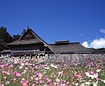 伝承行事や民芸品作りを体験できる「伝承園」。上品でおいしいと評判の郷土料理も味わえる。ここで立ち寄りたいのが、娘と馬の恋物語で知られる御蚕神堂(おしらどう)。赤く照らされた空間に千体のオシラサマが並び、神秘的。願いを書いた布をオシラサマの首にかけて。