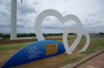 見晴らし台にあるオブジェ(通称:ダブルハート)には、地元で活動する男性音楽ユニット らせん の松田さんが創った詩が刻まれています。また、その左上にあるQRコードに携帯電話をかざすと、お得な情報満載の携帯サイト「うちナビ」がご覧いただけます。