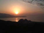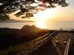 杉津パーキングエリアの展望台からの景色。夕陽が沈む頃はとびきりロマンティックな雰囲気に。海面を赤く染めて沈む夕陽は、ふたりの願いを叶えてくれそう。