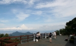 ロープウィエで山頂駅に到着したら、まず目指すのは山頂舎隣りにある「富士山展望デッキへ」。約140坪ものウッドデッキが広がっていて、思わず深呼吸したくなるような清々しい気分に。ここからの眺めは抜群で駿河湾や富士山が一望できる絶景スポットといえる。