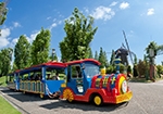 汽車型バスのメルヘン号に乗ってまず一周。使い終わった天ぷら油を再利用したバイオディーゼル燃料で走るメルヘン号。花や水車を眺めながら、のんびり走れば、気分もアップ。園内マップを片手に、車内から気になる場所をチェックしておこう。