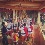 毎年1月2日と3日に行われる「千本餅つき」は、水間寺に古来より伝わる唯一の行事。ご本尊の出現を祝って十六童子が木の棒で餅をついて供養を行ったのが起源という。はっぴ、はかま姿の若者たちが、威勢の良い掛け声とともに餅をつく。ついた餅はもちまきで参拝者にもふるまわれる。