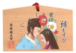 男女の名前を紙に書き、椿の枝に結ぶと願いが叶うといわれている。また、ここの絵馬には赤と白の椿の花やお夏と清十郎が描かれ、「愛はとこしえに」と書かれたかわいらしいもの。カップルは絵馬にぜひ願いを書いて祈願しよう。