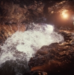 高さ50mの屏風のような絶壁が約2kmにわたって続く三段壁。平安時代に力を持った熊野水軍の舟隠し場所だったといわれる洞窟には、高速エレベーターで下りる。地下36mの洞窟内には日本最大級の青銅でできた辯才天が鎮座している。