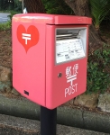SNS映え間違いなし!?? かわいいハートがついているピンクのポスト。 訪れた記念にここから、友人や家族に宛てた手紙を投函しては?切手やはがきは周辺の商店で販売されています。