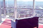 3Fにある展望室は地上高116m。景色はもちろん、展望ギャラリーでアートも楽しめるスペース。絶景ビューポイントには、ゆったりとくつろげるようにソファーが置かれている。心地良いBGMに包まれて、二人だけの世界に浸ってみる?