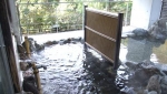 日帰り温泉で旅の疲れを癒して。檜と岩造りの内湯は男女が1週間ごとに入れ替わる。物産館、レストラン、ログハウス風宿泊施設など施設も充実。岩をふんだんに取り入れた露天風呂からは、四季折々の自然美を眺めることができて心もゆったり。