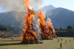 しめ縄や門松などのお正月飾りを各家から持ち寄り、積み上げて燃やすお正月の火祭り、どんど焼きは、毎年1月上旬に、緑川ダムイベント広場で開催される。美里町では“日本最大級のどんどや”と銘打って、高さ20m級のやぐらを3基設置して、参加者がいっせいに点火する。当日は、ぜんざいや鏡もちも販売される。