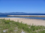 再び橋を渡ってビーチへもどり、レストハウスへ。木材やガラスをふんだんに使用したラウンジは居心地のよい空間。温水シャワー、コインロッカーなどの設備があり、夏の海水浴シーズンに重宝する。屋外で日差しをたっぷり浴びたなら、テーブルやイスもあるレストハウスでくつろぐのもいい。