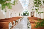 湖のほとりにたたずむクリスタルチャペルは、父天井まで11m、大理石のバージンロードは30m続くのびやかなスケール感。ガラスの祭壇で愛を誓おう。そして、晴れた日には太平洋まで一望できるロケーションで祝福のフラワーシャワーを浴び、湖へと続く大階段を進むとクライマックスに待っているのは噴水のサプライズ。