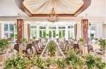 敷地内の遊歩道を進んだ先に大きな森があり、その一番奥にあるのがオリエンタルテラス邸。細部まで徹底してオリエンタルムードを貫き、和装にも似合う会場。ガーデンには籐にソファやバーカウンターが。大人の隠れ家でくつろぐ、優雅なヴァカンスのような時間が流れる。
