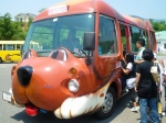 移動はワンニャンバスで 那須どうぶつ王国は東京ドーム10個分の敷地面積。 広い園内の移動は王国タウンと王国ファームをつなぐワンニャンバスが大活躍。他のバスとすれ違う時に「ワン!ワン!」「ニャン、ニャン、ニャオーン」と鳴くのがおもしろい。無料で乗れて、愛犬も同乗可能。