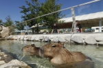 人気のカピバラにふれたり、給餌体験をしてみよう! 人間用の足湯もあって、カピバラが温泉に入ってのんびりしている姿を見ながら、のほほんとしちゃおう!
