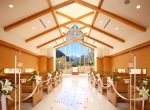 北アルプスが名前の由来。森の緑に映えるスタイリッシュな三角屋根に純白の壁画印象的な独立型チャペル。ガラス張りの祭壇からは北アルプスを望む豊かな自然の風景が広がり、開放感あふれる誓いのセレモニーが叶う。挙式後はチャペル前のガーデンで、フラワーシャワーの祝福やスナップ写真の撮影など、ゲストと楽しいひとときを過ごして。