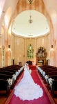 高さ25mの高い天井と長いバージンロードがまっさきに目に入る。ステンドグラスからはやわらかな光がチャペル内に差し込んでいる。欧州で使用されていたアンティーク品が配され、重厚な雰囲気も漂う。二人でバージンロードを歩めば、彼からプロポーズの言葉が聞けるかも!?